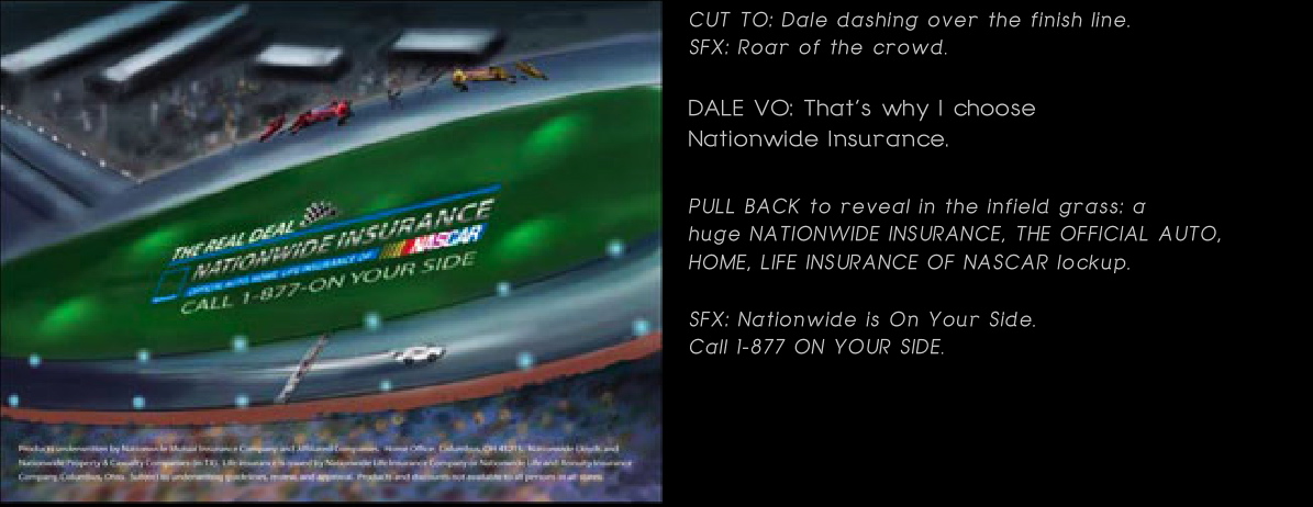 This commercial spot was to be a paean to Dale Earnhardt Jr., the crown prince of NASCAR, who happens to also be a bona fide Nationwide policyholder — and has been for decades.